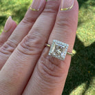 This exquisite ring showcases a stunning 1.85ct cognac princess cut diamond, celebrated for its unique, warm hue. Encircling this magnificent center stone is a delicate halo of brilliant white diamonds, which amplify its radiant sparkle and contrast beautifully against the rich cognac tone. Crafted in 14k white gold, the band enhances the elegance and timeless appeal of this piece. Perfect for those seeking a blend of classic sophistication and contemporary style. Ring size is a 7.