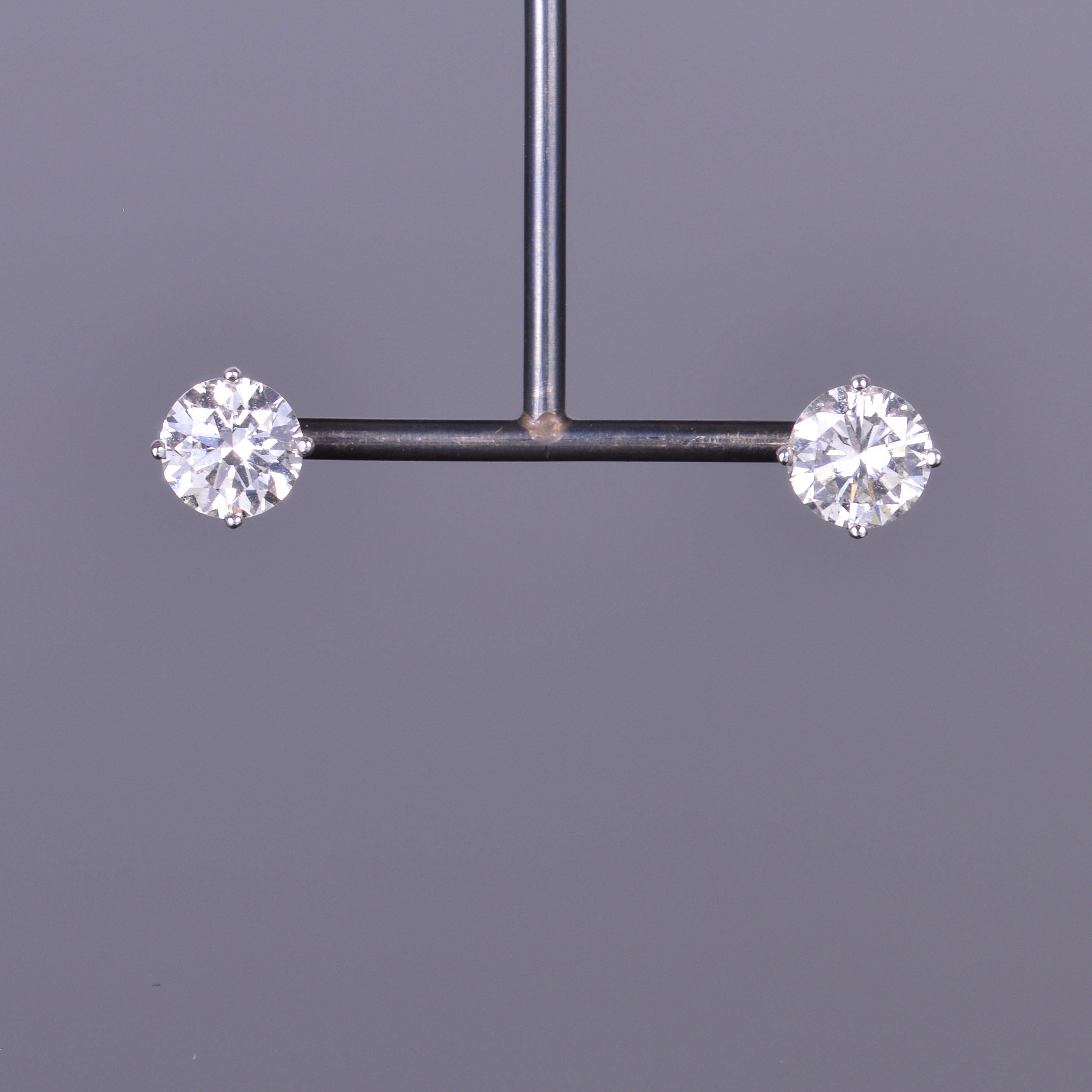 Such a gorgeous pair of round diamond stud earrings! These earrings are 2.31 carats in total weight, and are H/I in color with VS2/SI1 clarity. The diamonds are beautifully set in 14k white gold.