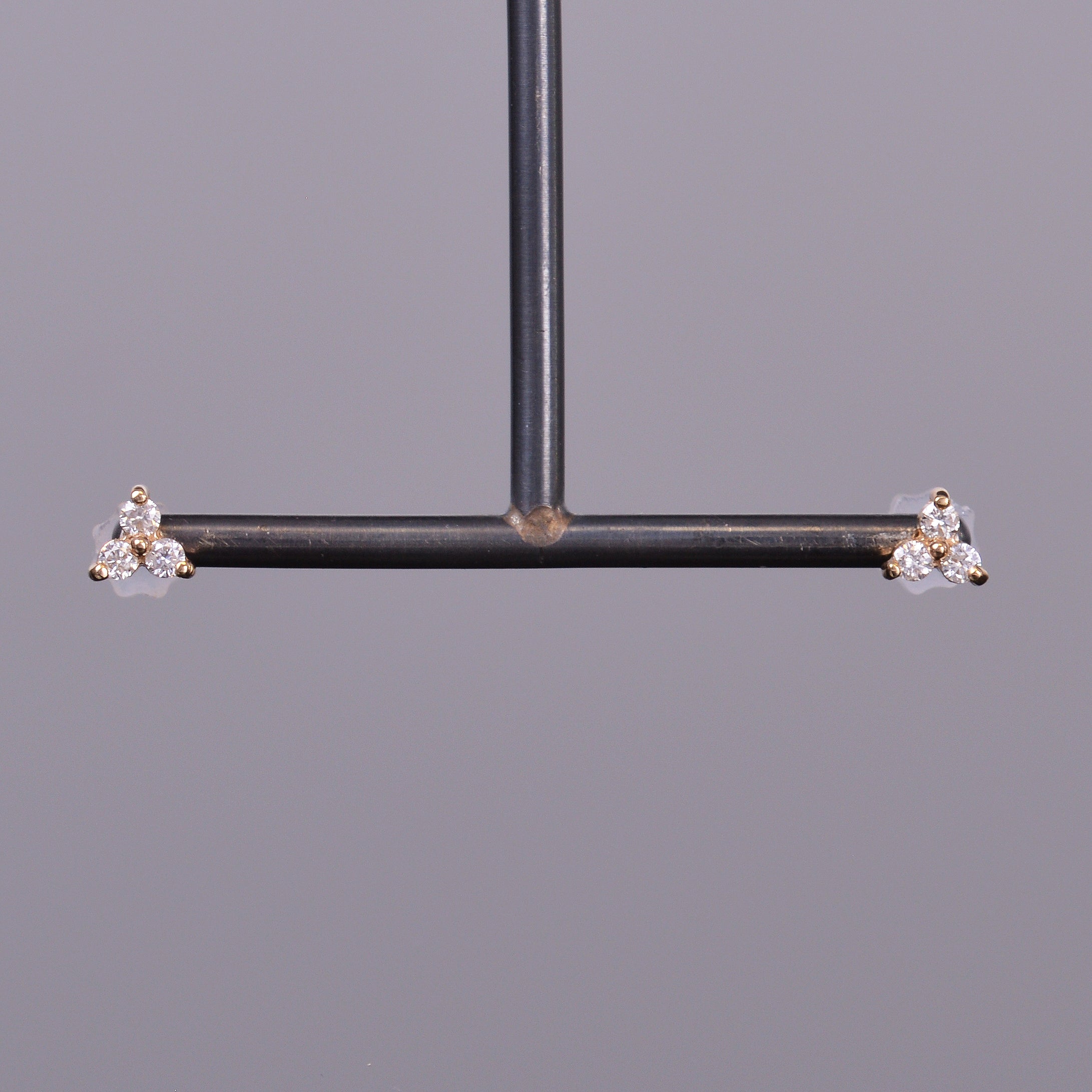 These stud earrings are delicate and beautiful. With just a hint of sparkle, these earrings are made with 6 small gorgeous white diamonds all set in 14k yellow gold. 3.50mm x 3.50mm.