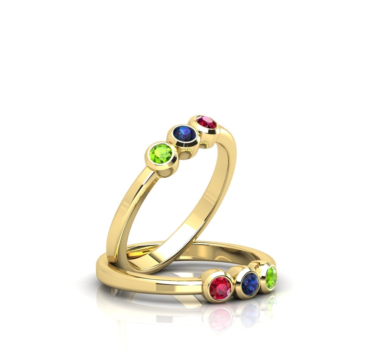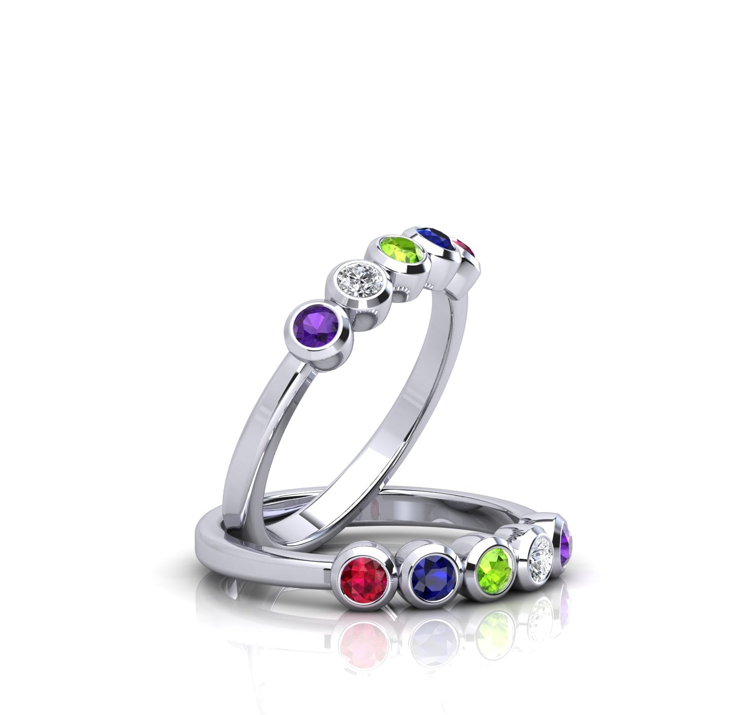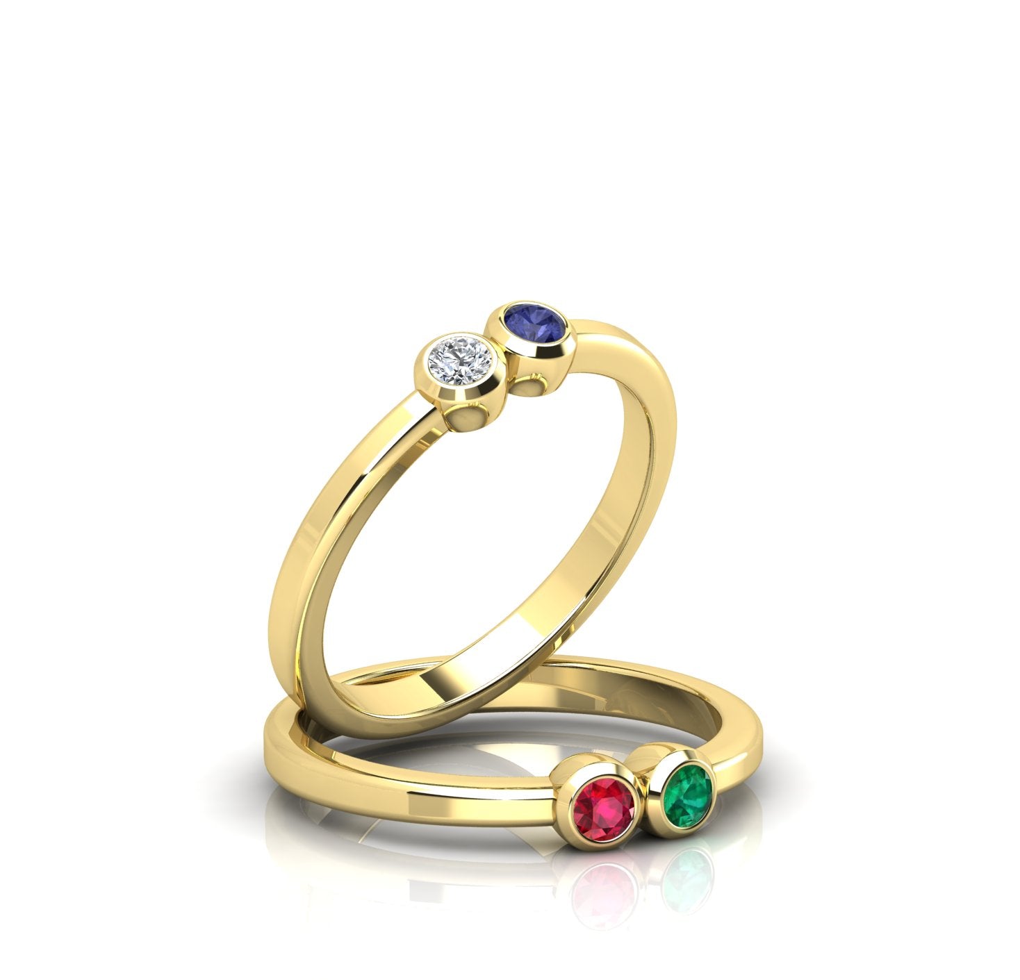 Let's create a new favorite piece of jewelry! This is a fully customizable birthstone ring. Any number of birthstones can be bezel set into your choice of white, yellow or rose gold. Let us know your choice of birthstones and ring size in the note section at checkout.