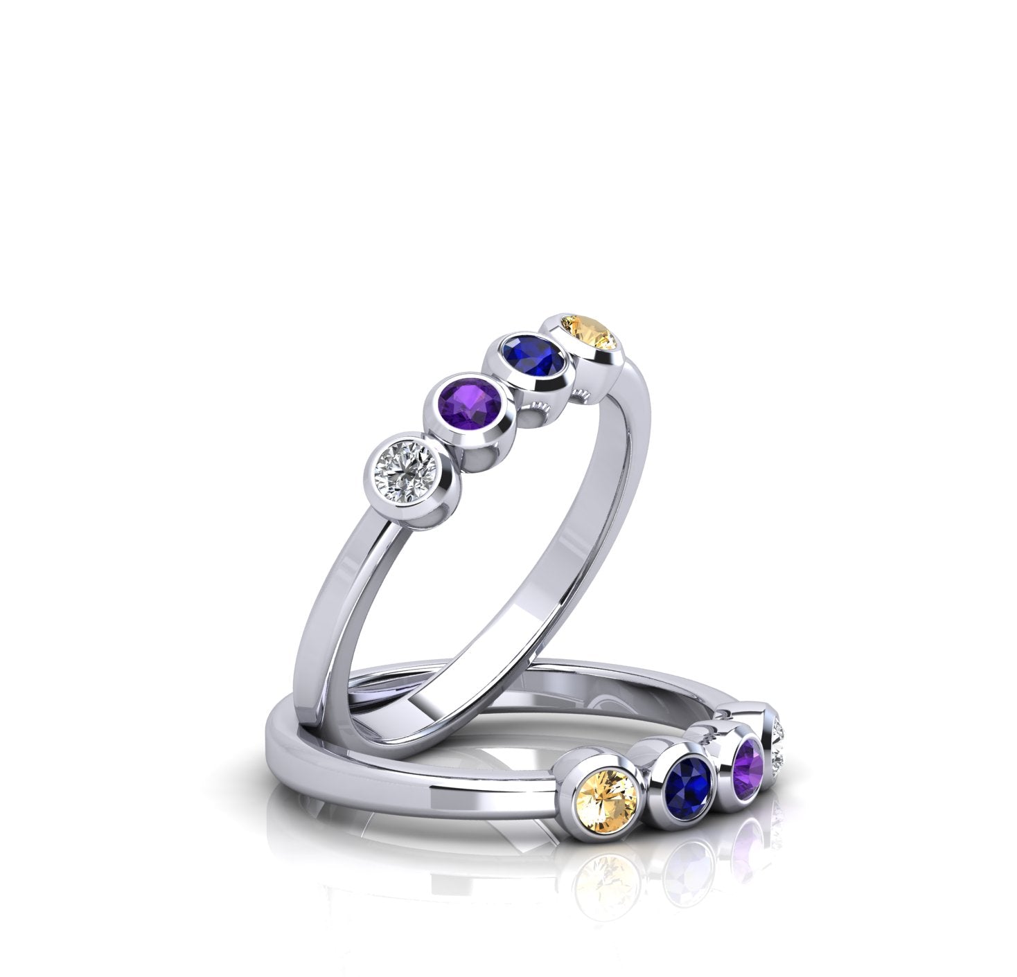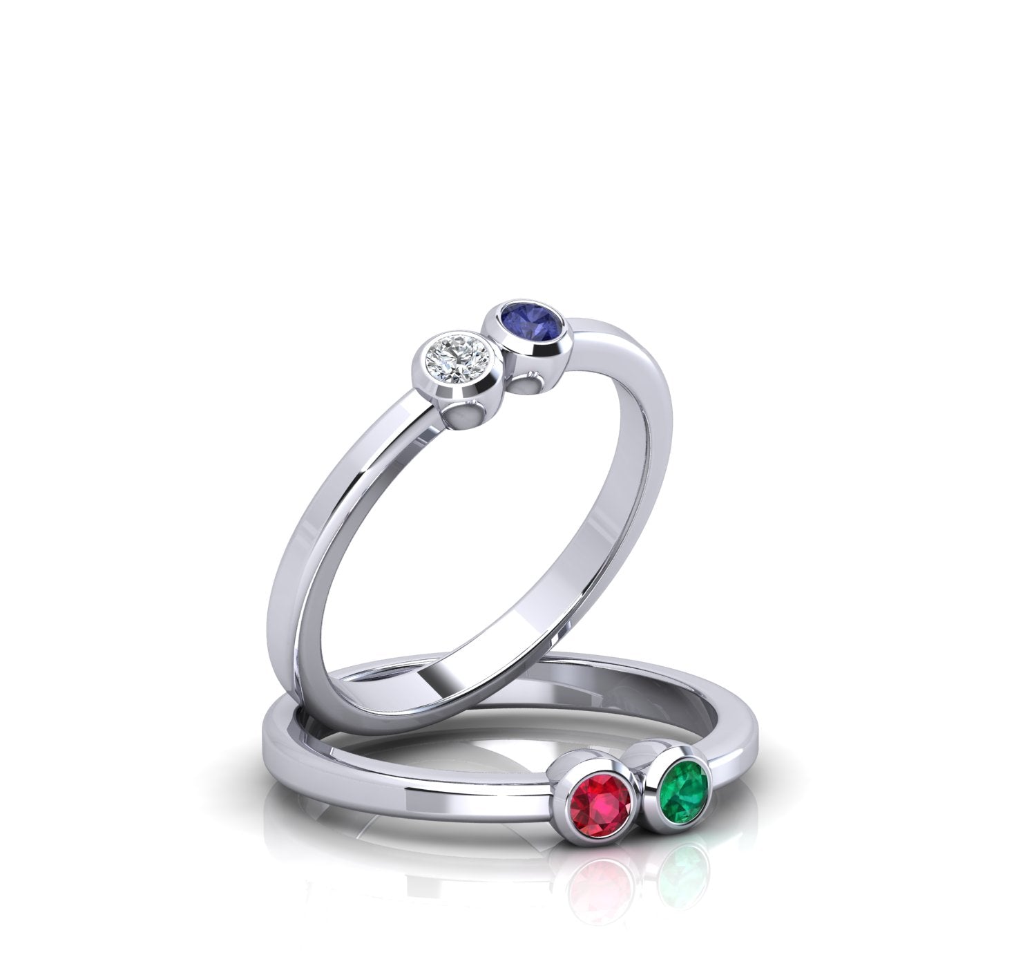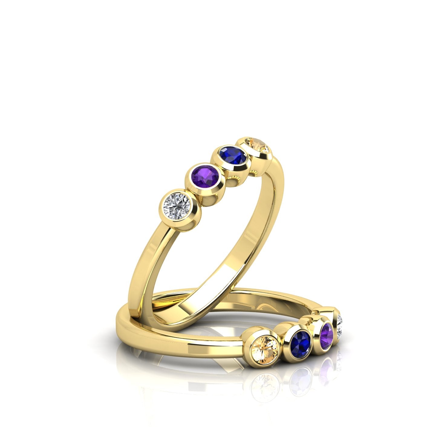 Let's create a new favorite piece of jewelry! This is a fully customizable birthstone ring. Any number of birthstones can be bezel set into your choice of white, yellow or rose gold. Let us know your choice of birthstones and ring size in the note section at checkout.
