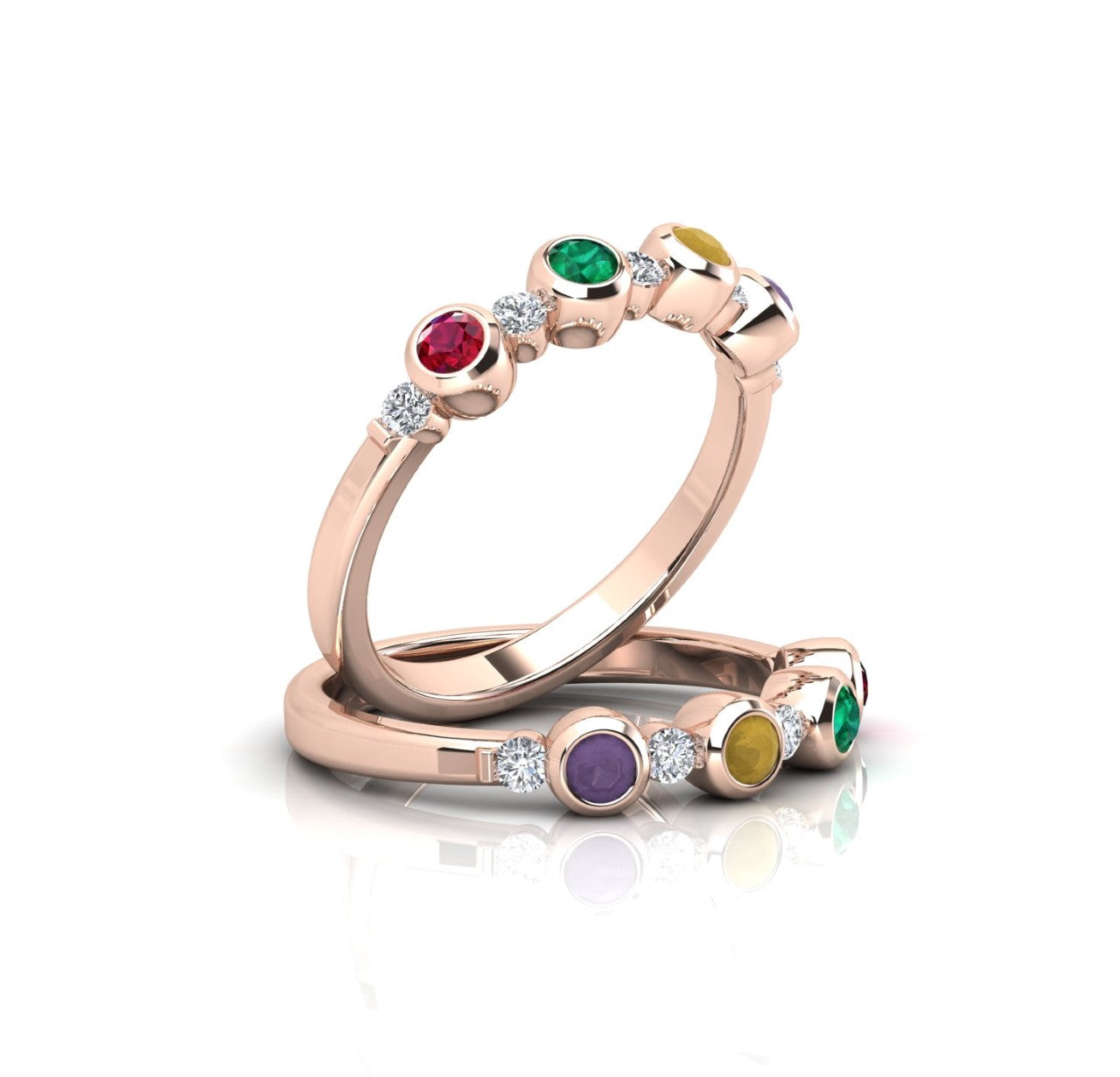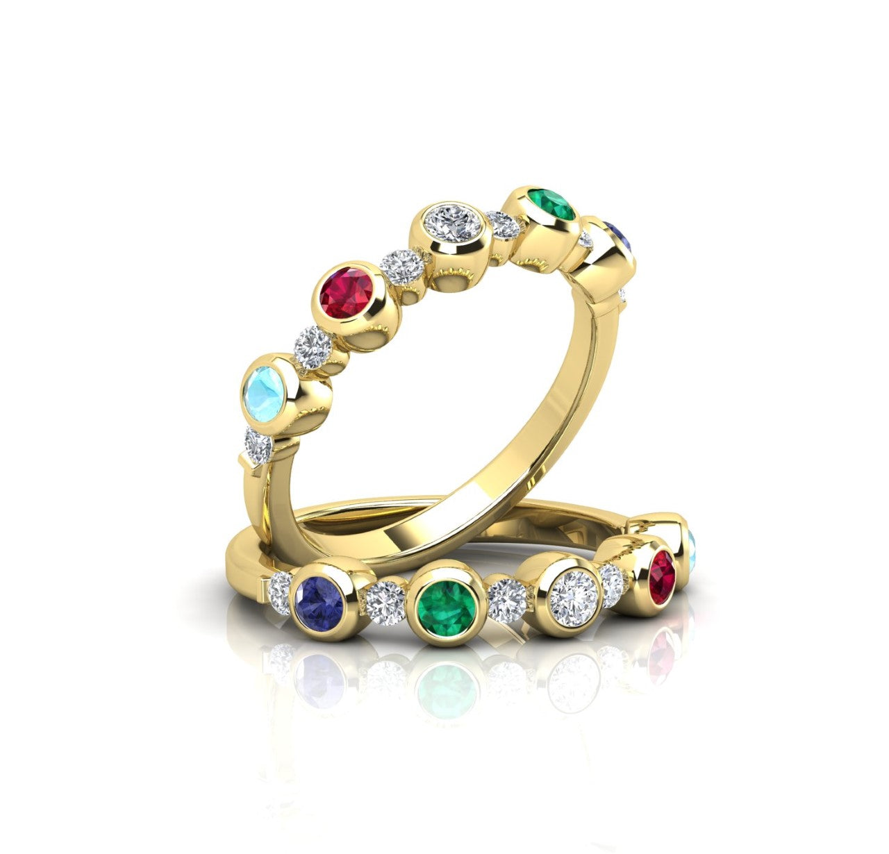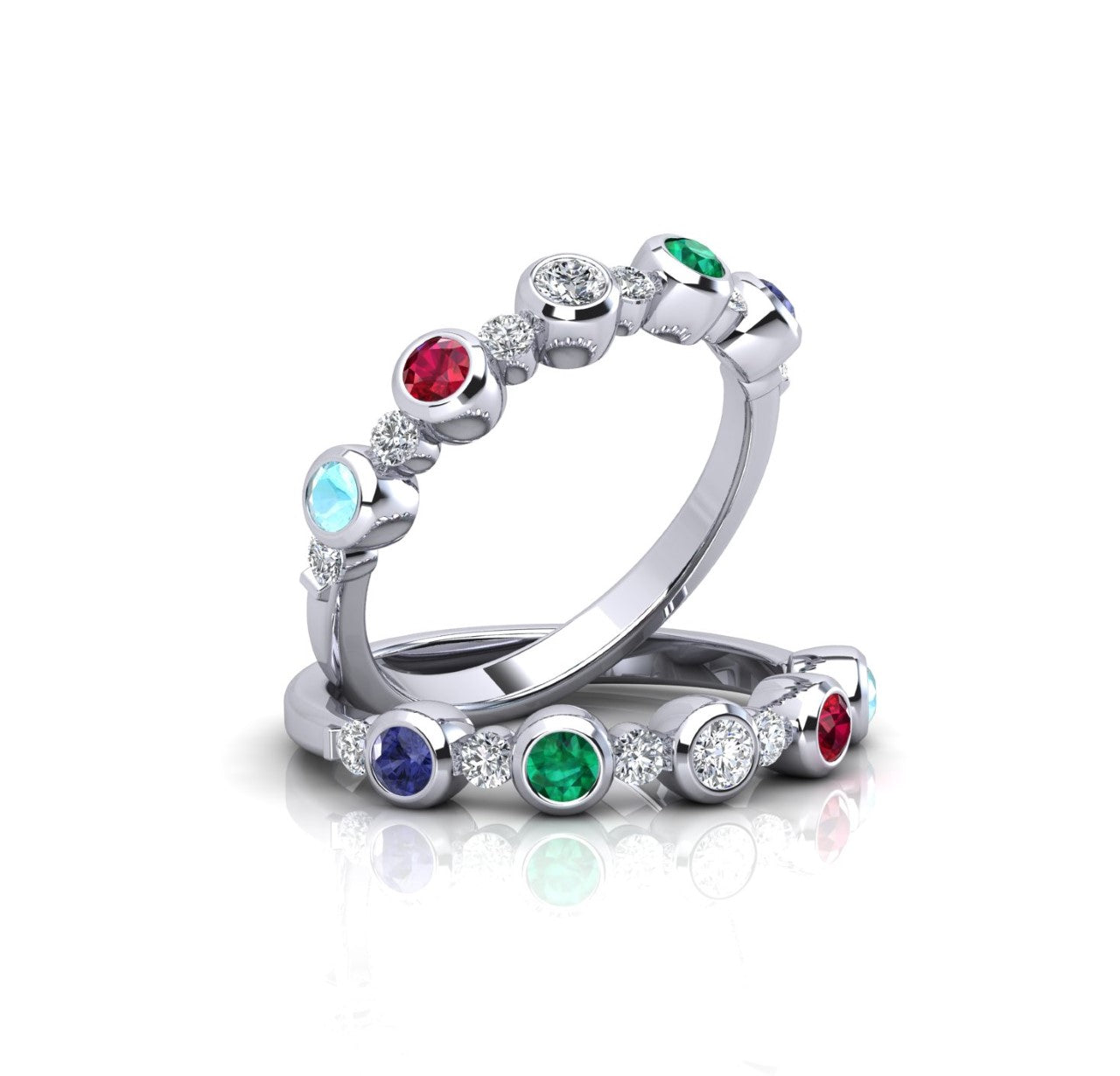 Let's create a new favorite piece of jewelry! This is a fully customizable birthstone ring. Any number of birthstones can be bezel set into your choice of white, yellow or rose gold. Let us know your choice of birthstones and ring size in the note section at checkout.