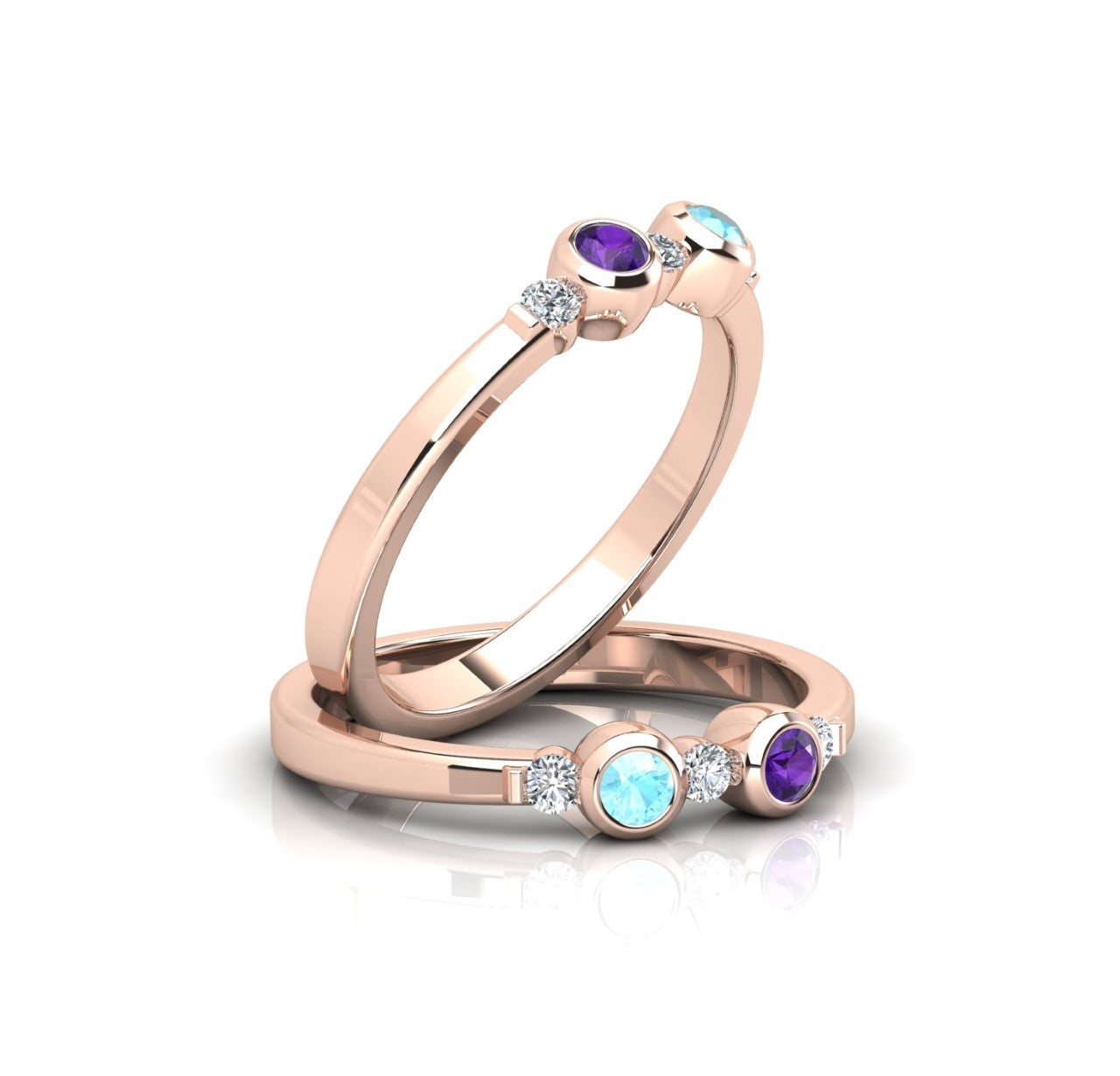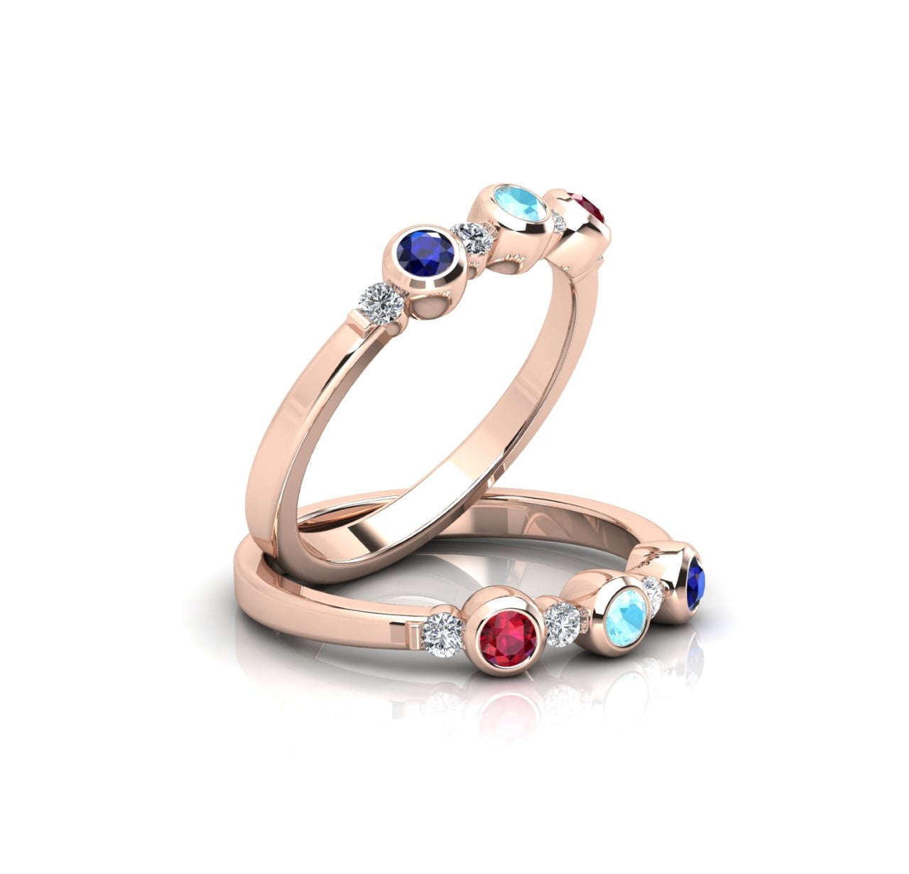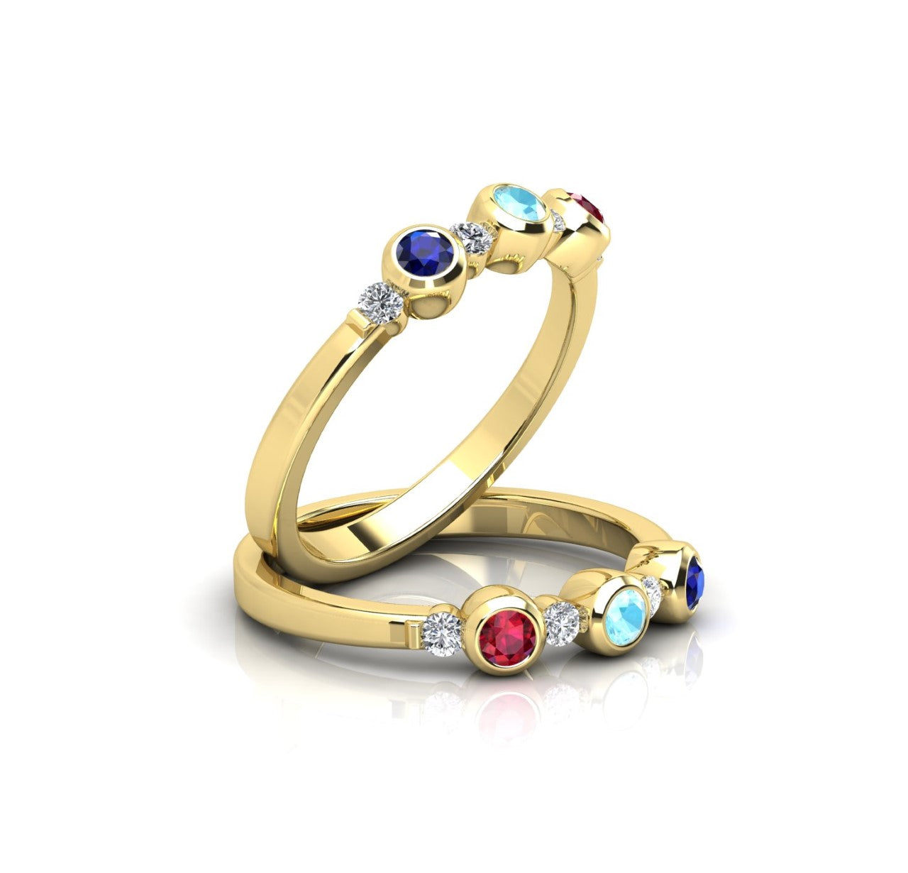 Let's create a new favorite piece of jewelry! This is a fully customizable birthstone ring. Any number of birthstones can be bezel set into your choice of white, yellow or rose gold. Let us know your choice of birthstones and ring size in the note section at checkout.