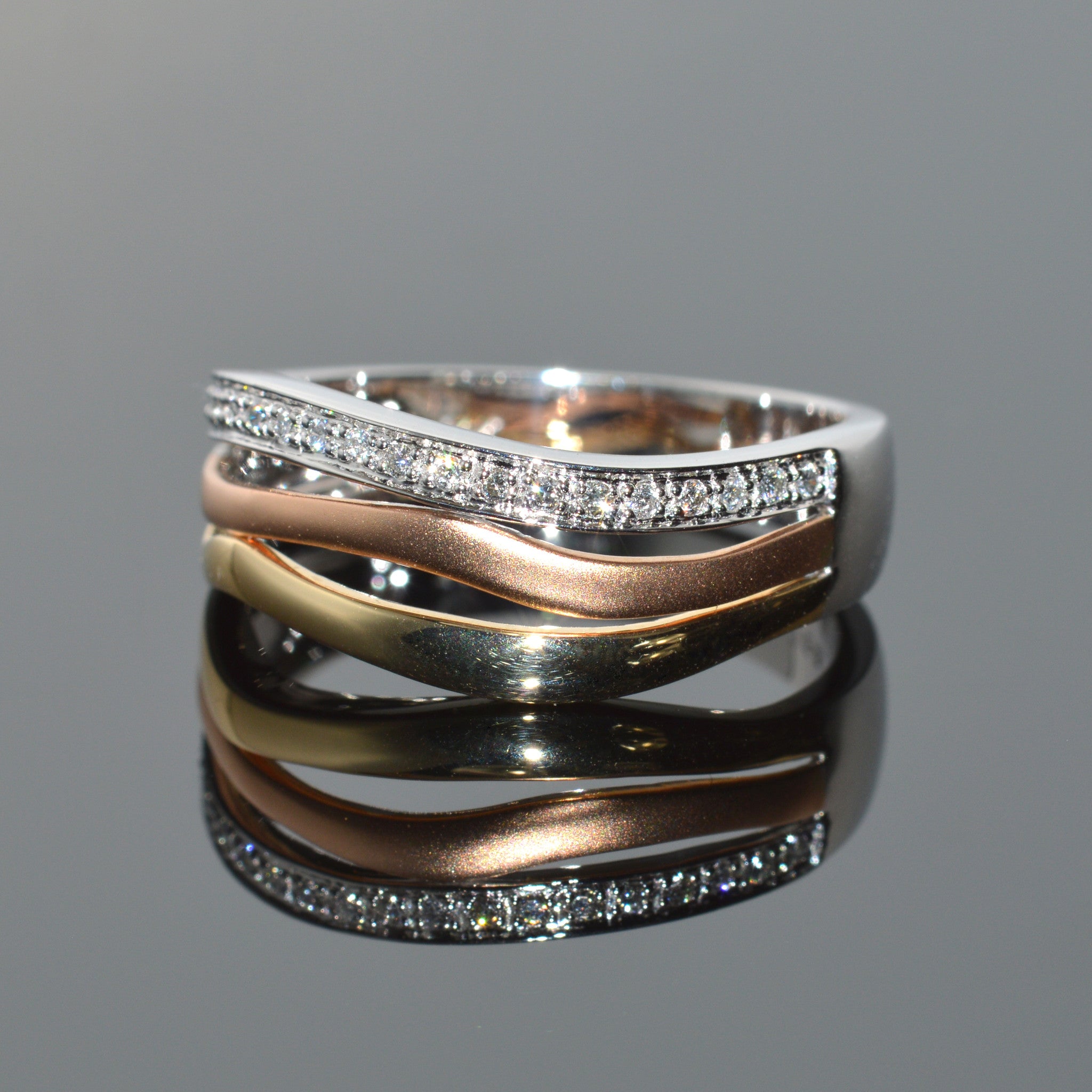 This timeless ring goes with everything! 14k rose gold, yellow gold, and white gold all in one ring and accented by the most beautiful diamonds.