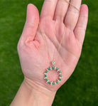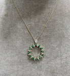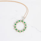 We took a gorgeous reclaimed vintage emerald and diamond pendant and added a touch more sparkle!! Hanging from the striking pendant is a beautiful .44 carat pear diamond. All set in 18k yellow gold and white gold. The dimensions of this pendant are 37.5mm x 30mm.
