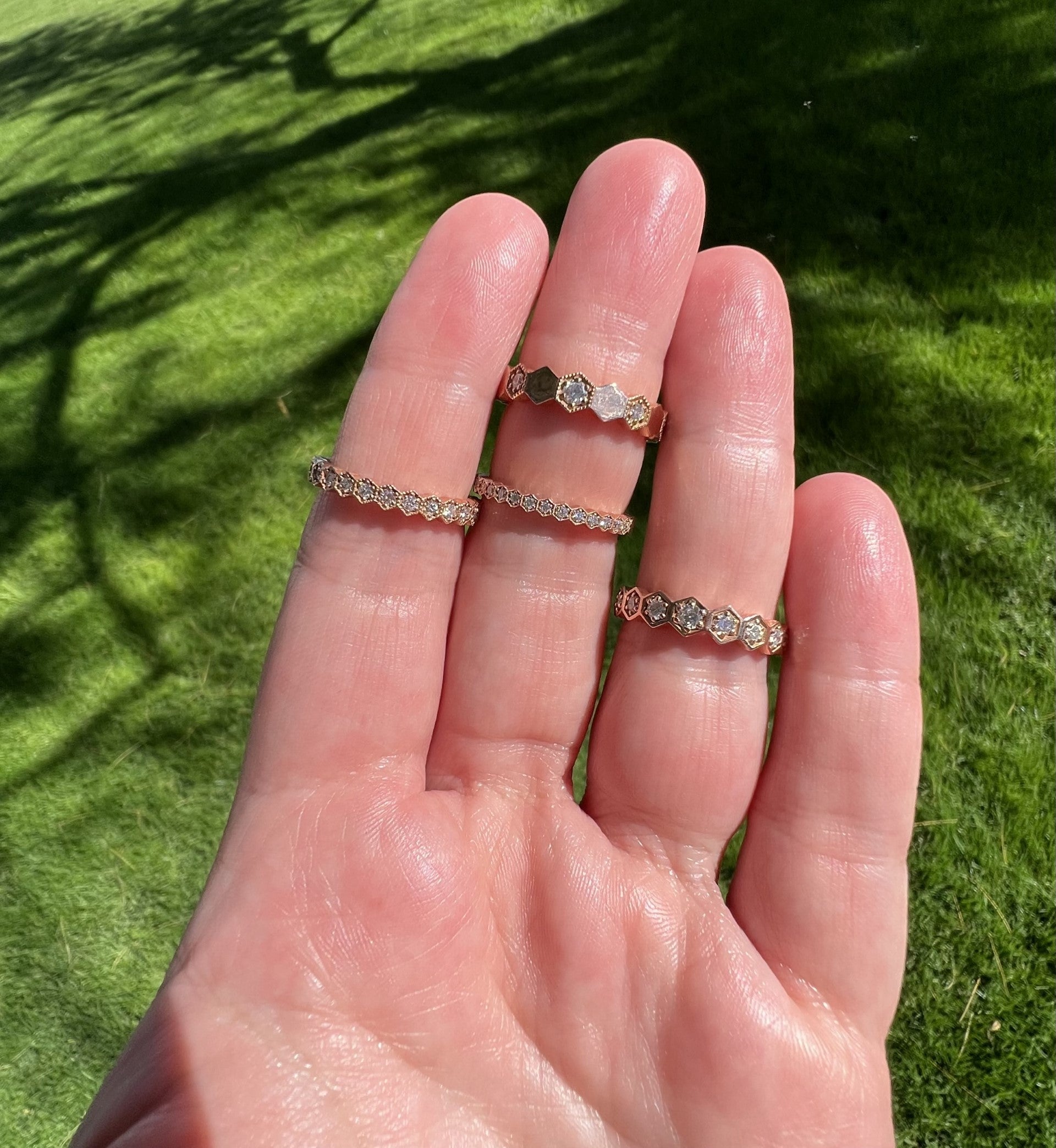 Diamond Hexagon Band in Rose Gold