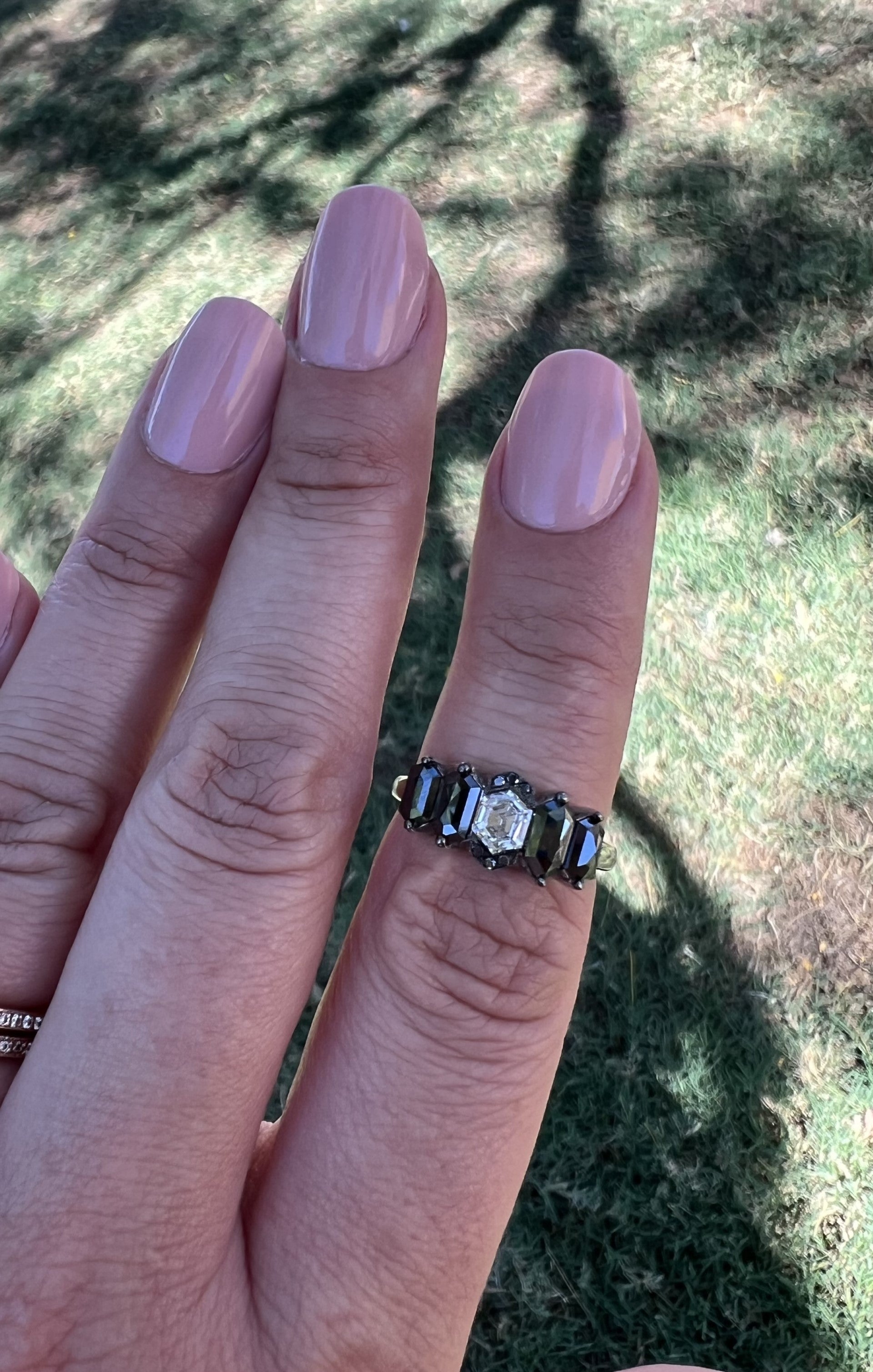 Black and White Hexagon Diamond Ring