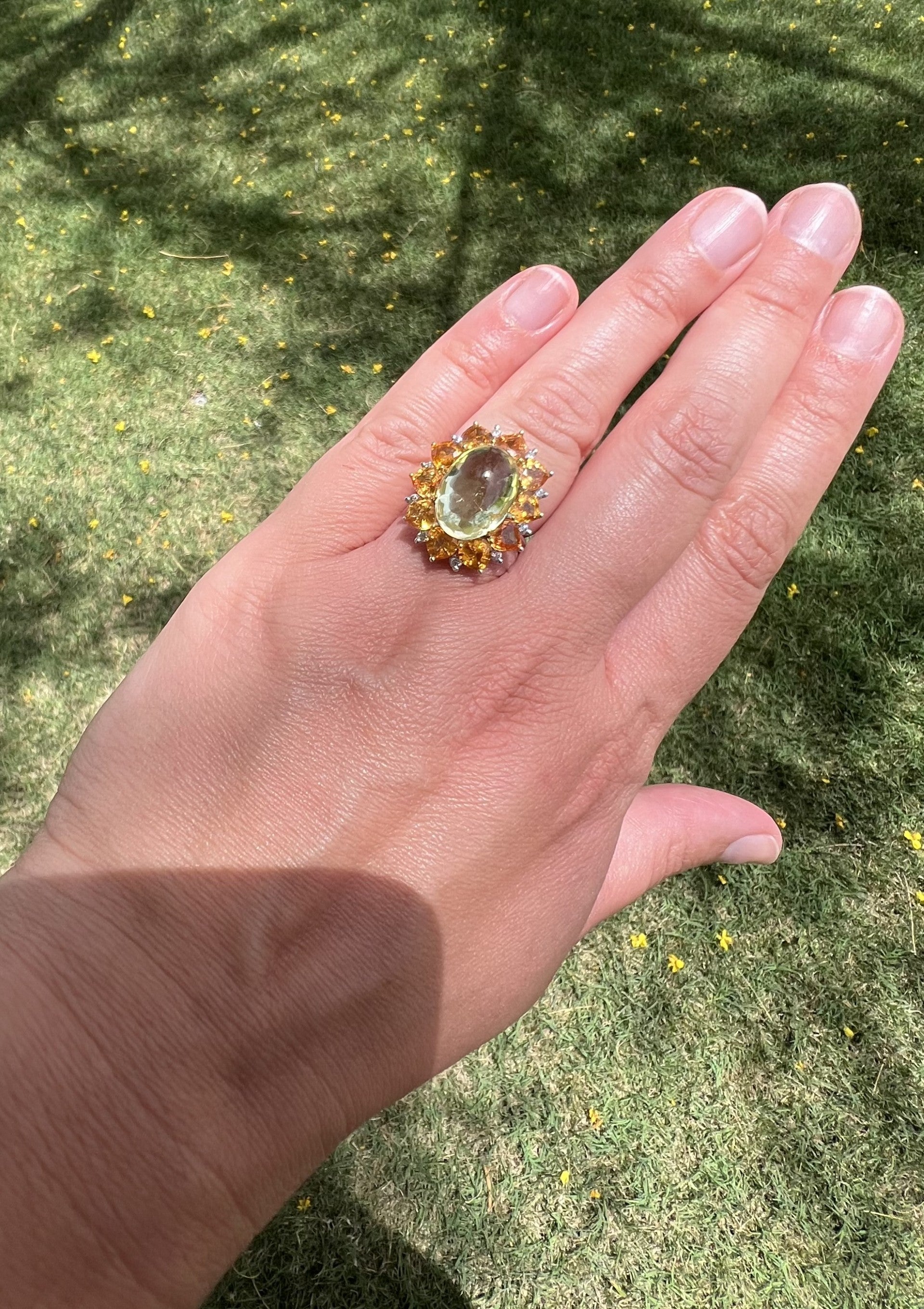 Green Tourmaline and Canary Yellow Sapphire Cocktail Ring