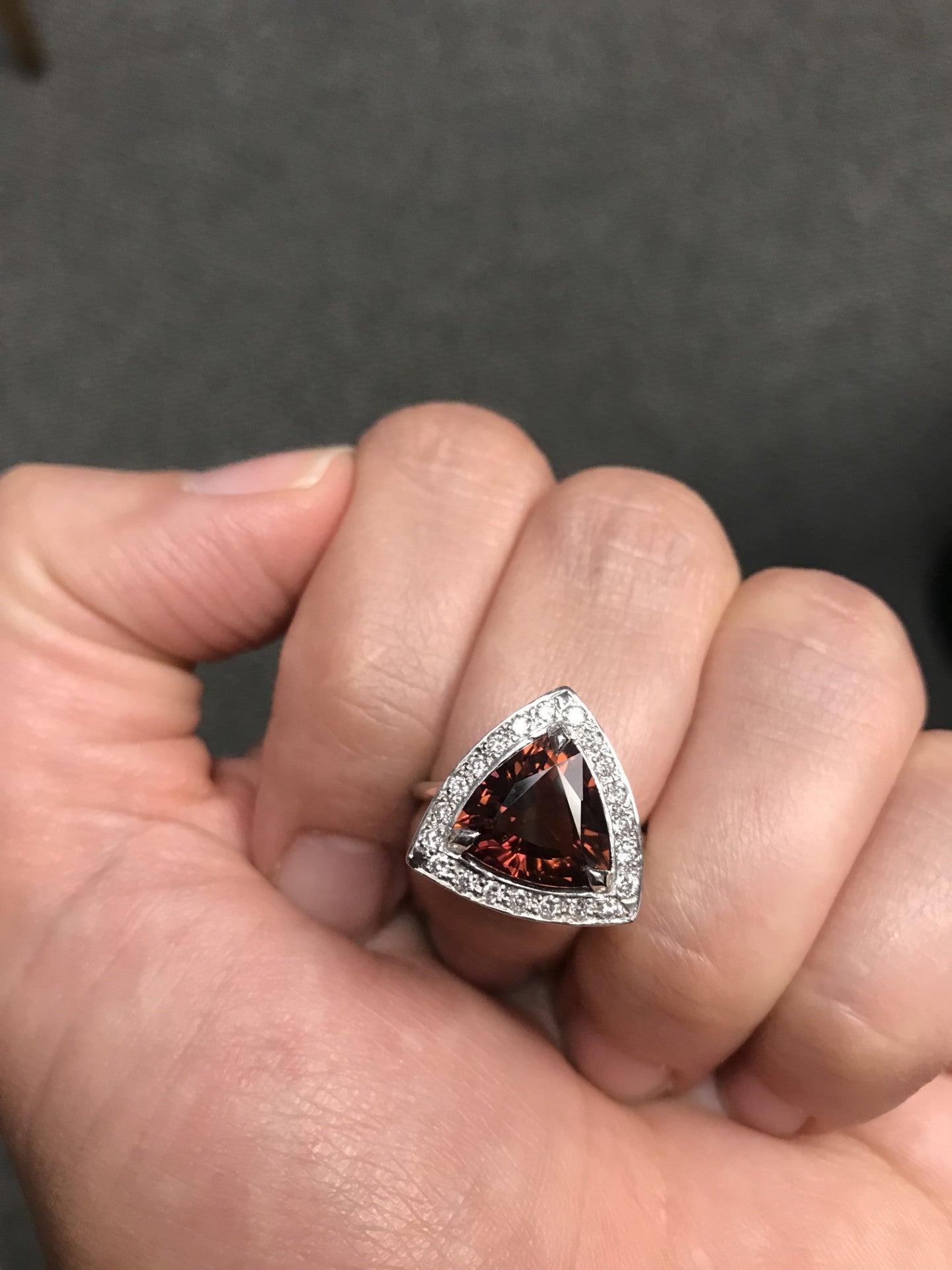 Rubellite and Diamond Trillion Halo Ring