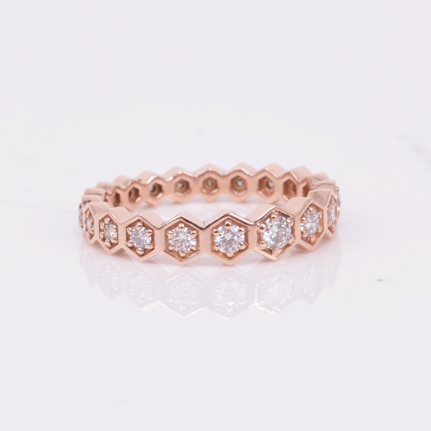 A truly remarkable diamond eternity band with .51 carats of diamonds that graduate in size all around! Set in 14k rose gold. This band looks amazing when worn separately or stacked with other bands! Ring size is a 7.