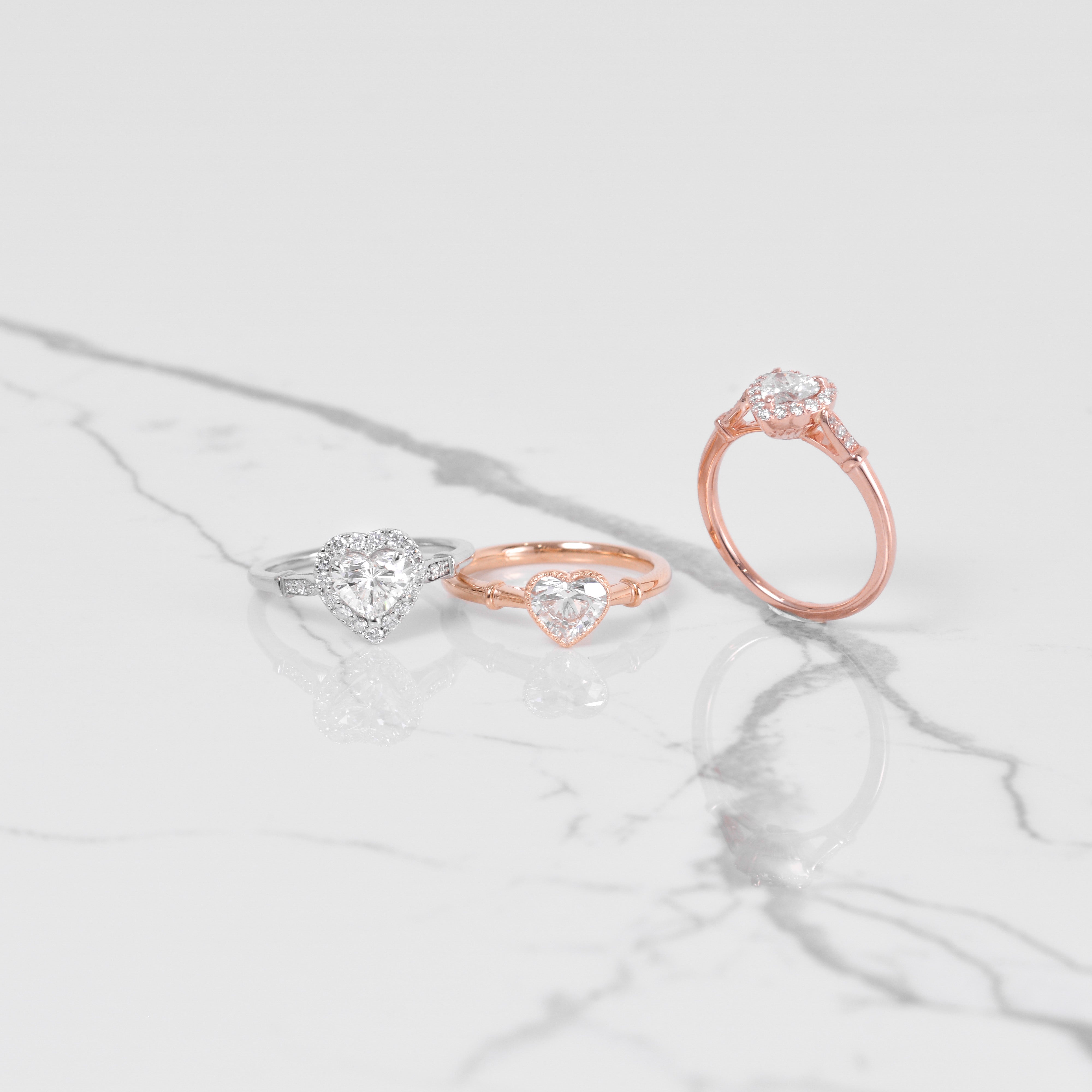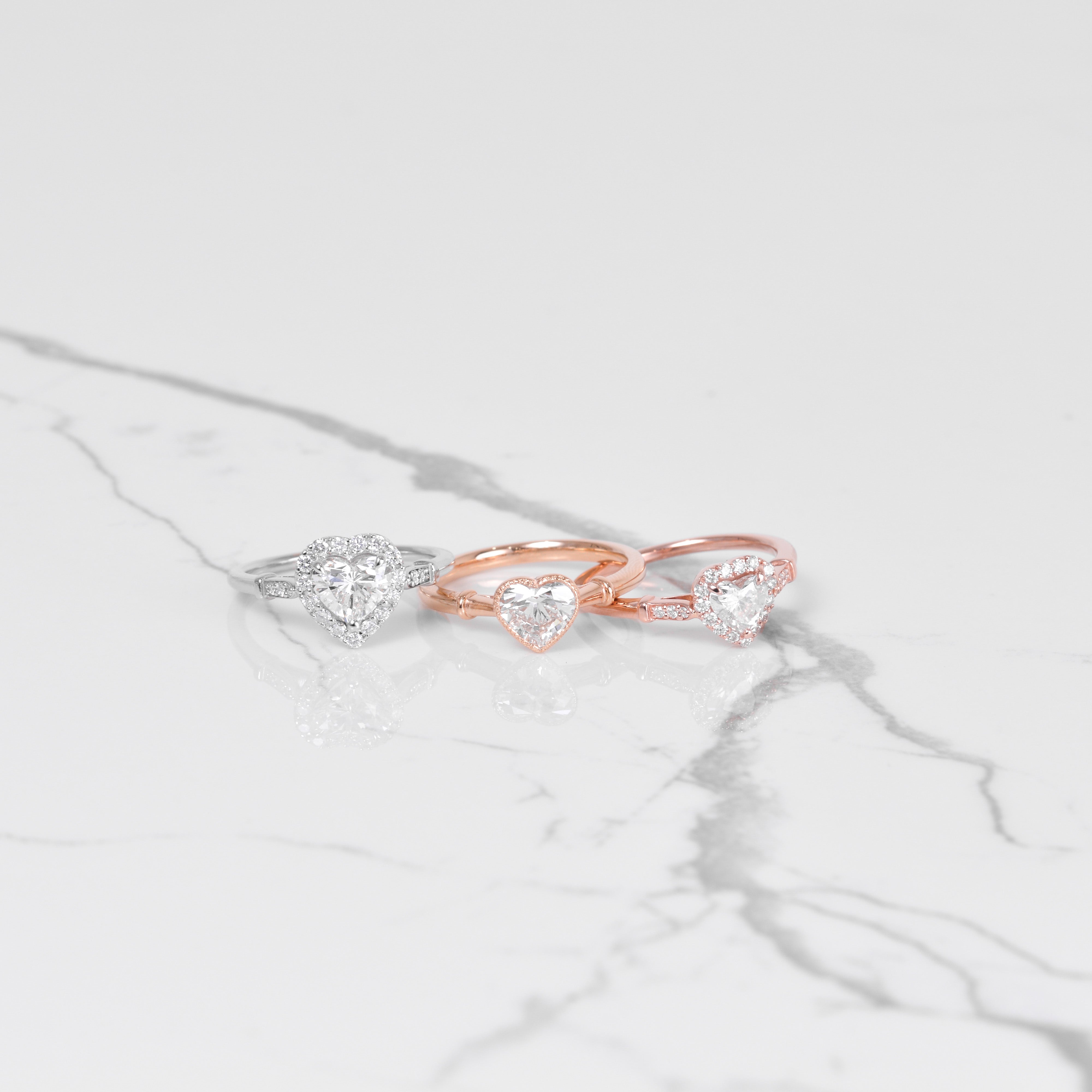 Diamond Heart Ring with Diamond Halo in Rose Gold
