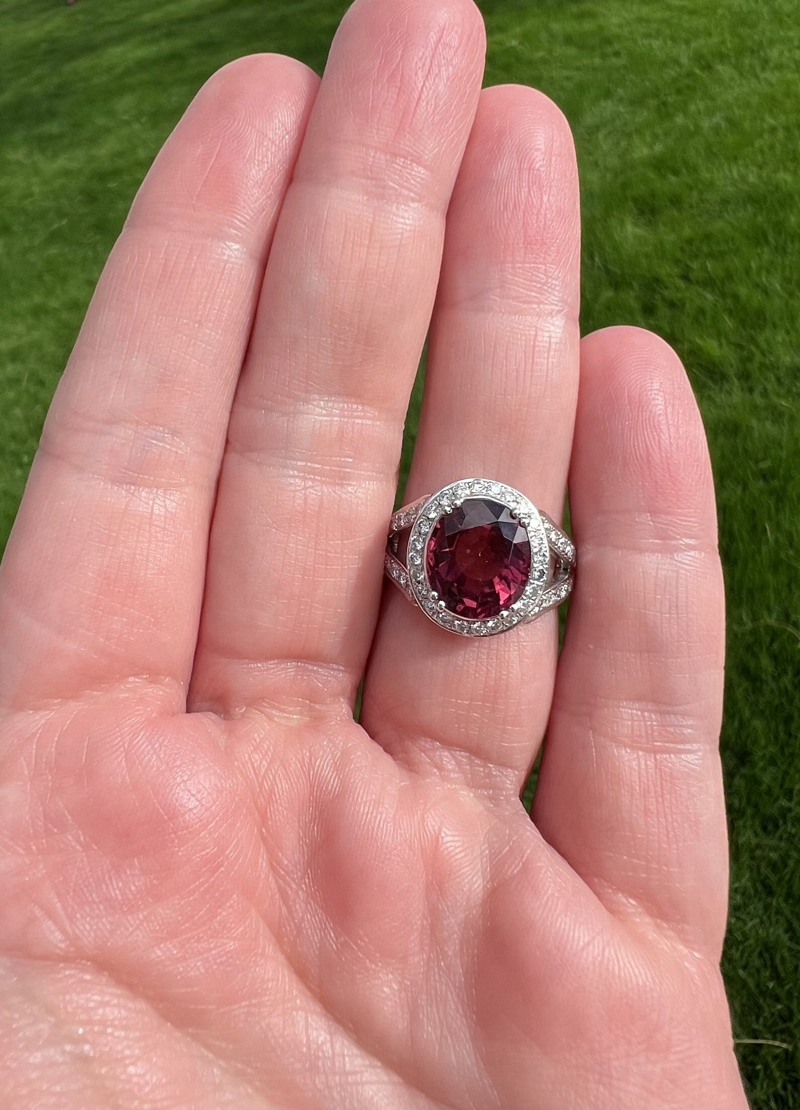 Pink Tourmaline and Diamond Halo Ring
