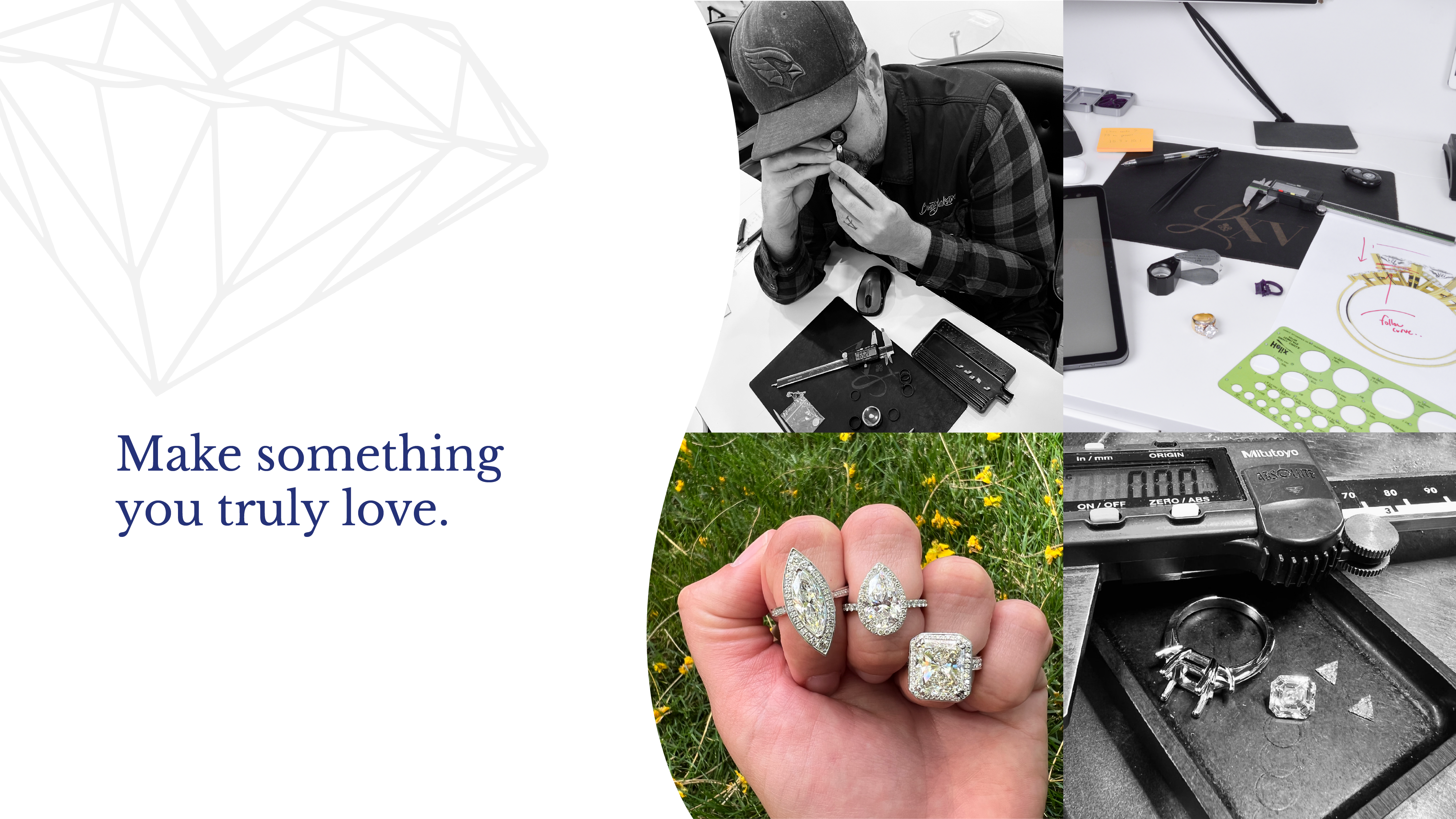 To get started, schedule an in-person or virtual meeting with Ethan. You can schedule by phone, email, direct message through our contact page, or any social media platforms. During this meeting, you and Ethan will get to know one another. We will discuss your goals, design inspiration, budget, and timeframe so that you can enjoy the entire custom design experience. Ethan will discuss all possible options and answer any questions throughout the whole process. We do not expect you to know what you want or even have any jewelry knowledge; the process is completely tailored to you and your needs. For us, this is a collaboration with you in creating your perfect custom piece. We can't wait to meet you!