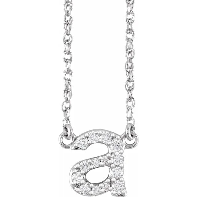 Introducing our exquisite collection of diamond initial necklaces! From the moment you lay eyes on them, you'll be captivated by their beauty and charm. Each necklace features an initial pendant showcasing a brilliant diamond studded lower case initial that holds a world of significance. Whether it's to celebrate your own unique identity or to honor a loved one, these initial necklaces are the perfect embodiment of love, affection, and connection. You can select the perfect letter that resonates with your heart or gift one to a person you hold dear.