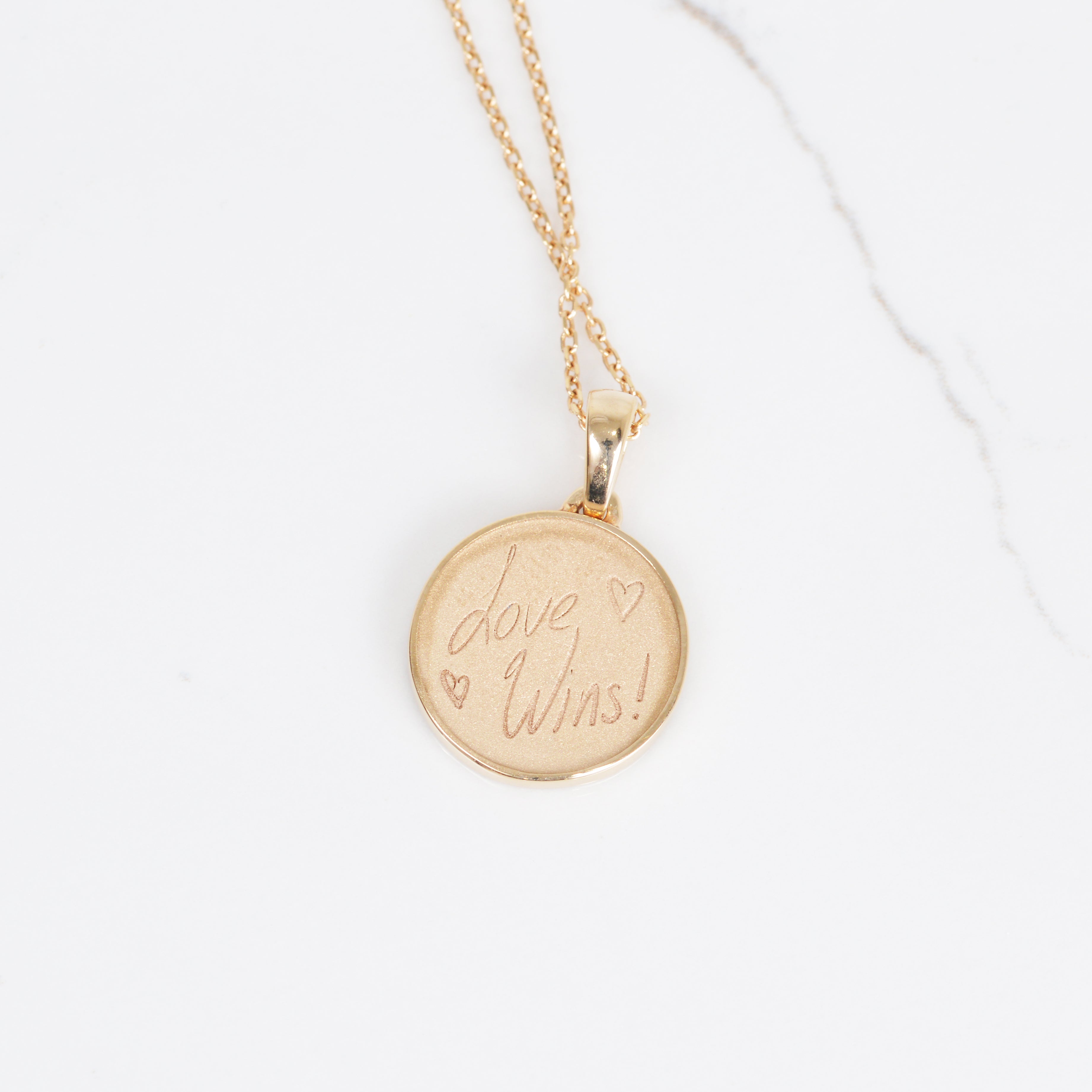 This is our love wins necklace! It is not just a normal pendant, it is a part of our movement. 100% of the proceeds of every love wins pendant goes to helping people and animals in need. Be sure to follow us on Instagram, and be a part of our monthly giveaway!