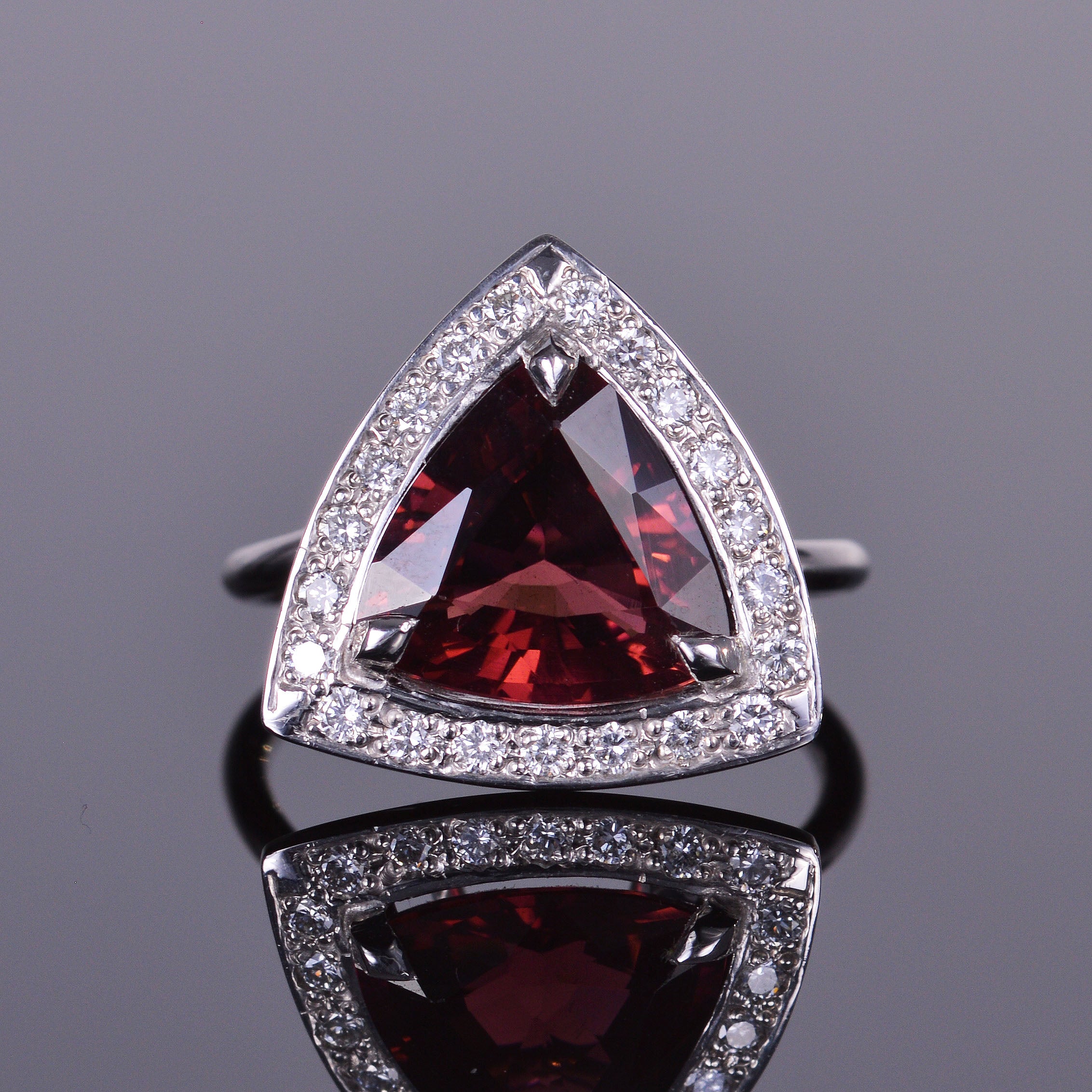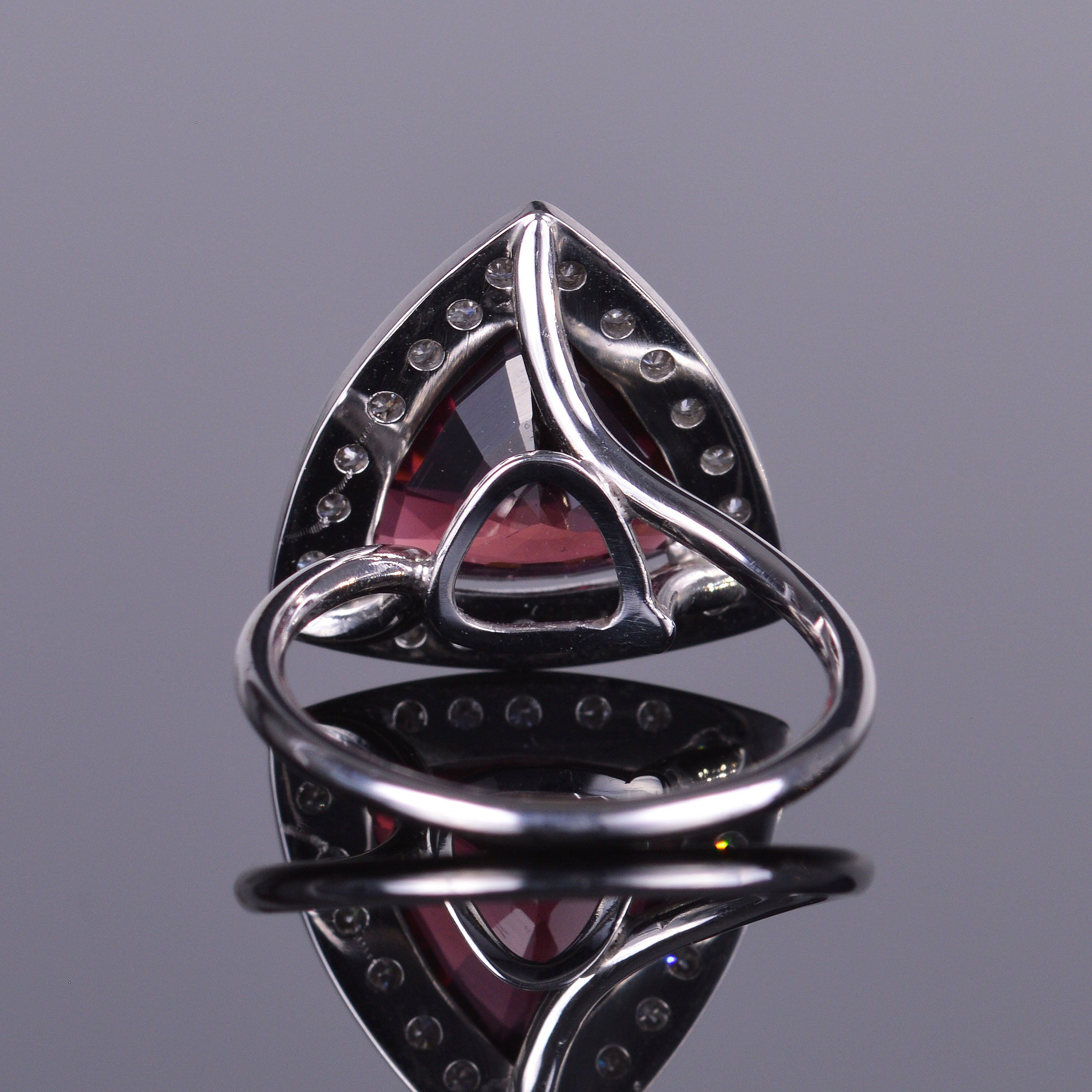 Rubellite and Diamond Trillion Halo Ring